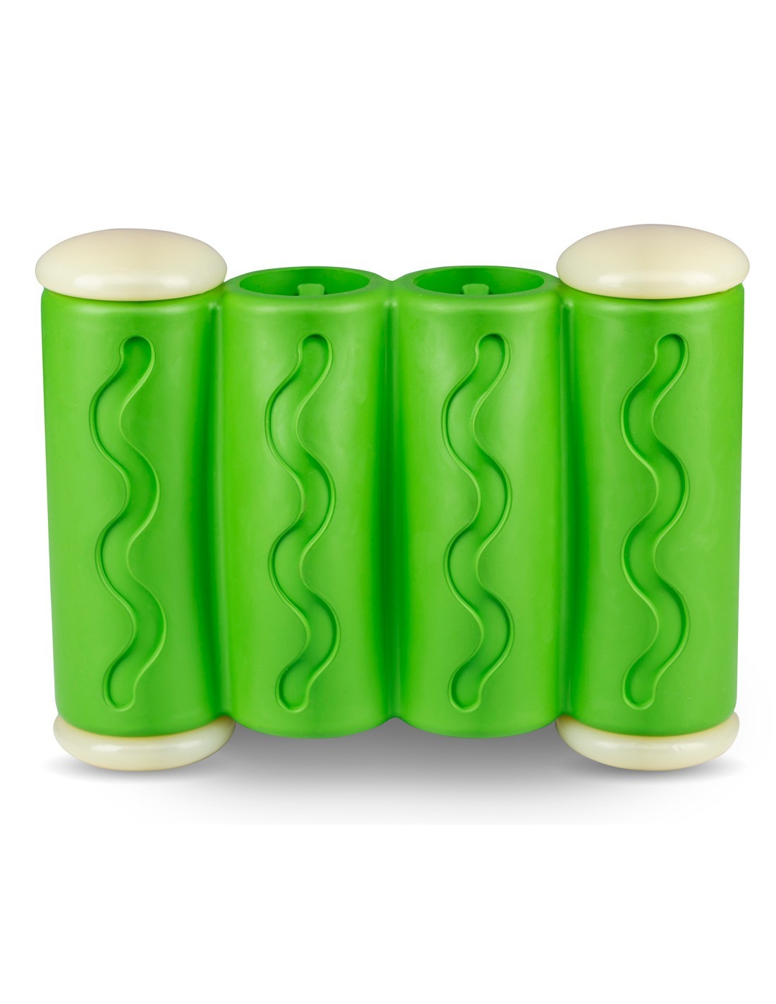 El juguete PetSafe Ribinator es un juguete mordedor para perros duradero y rellenable con golosinas en su interior. Los tubos de goma y los soportes de nailon hacen que el juguete sea resistente. También ayuda a estimular e involucrar a tu perro en mejorar el tiempo de juego. La fuerza de la masticación hace que el Ribinator sea una gran adición a la colección de juguetes de tu perro, incluso para los masticadores más enérgicos. El Ribinator se puede rellenar con todo tipo de snacks gracias a las formas del interior de los tubos.