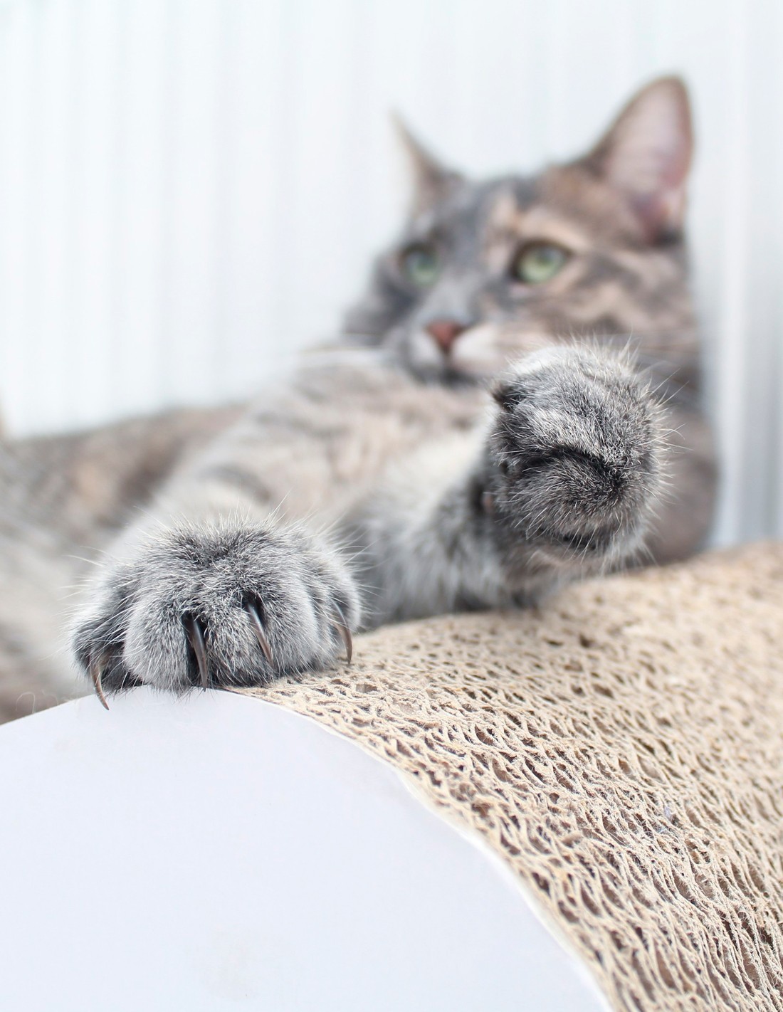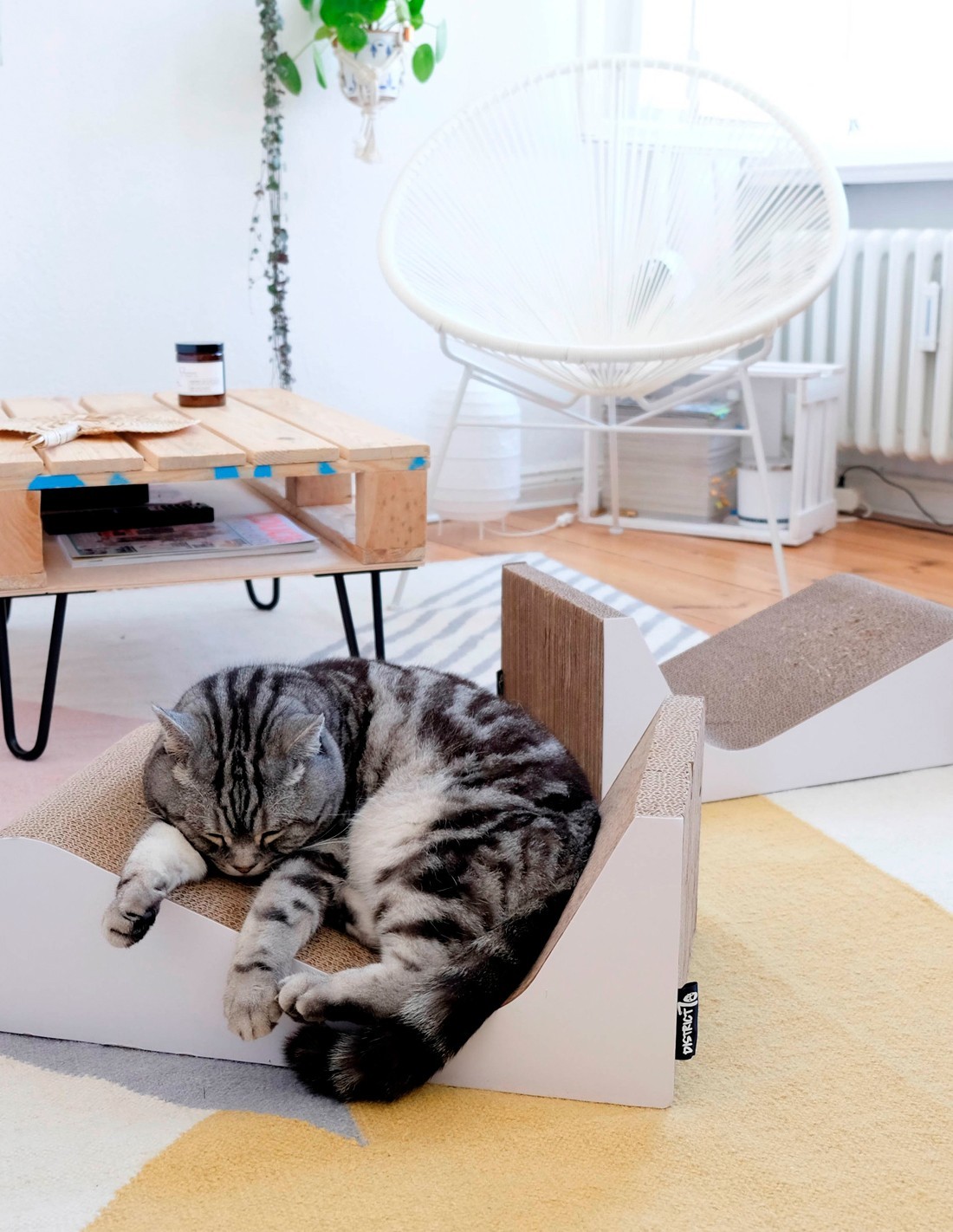 Todo Cat Parent sabe que a los gatos les encanta el cartón. Un material versátil que ofrece a nuestros gatos muchos momentos felices, desde rascarse y descansar hasta esconderse y jugar. District 70 solo usa cartón corrugado reciclado.