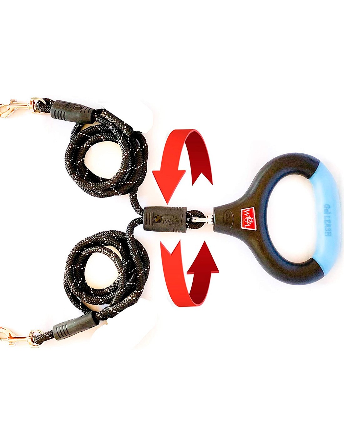 Disfruta de la increíble sensación de pasear a dos perros mientras sostienes con una sola correa con el mango de gel lleno de líquido para tu comodidad. Deja que el acoplador de la correa haga el trabajo duro de desenredarse automáticamente para que puedas concentrarte en disfrutar del paseo. Esta correa de Wigzi te garantiza menos enredos y más diversión en esos paseos con tus perros.