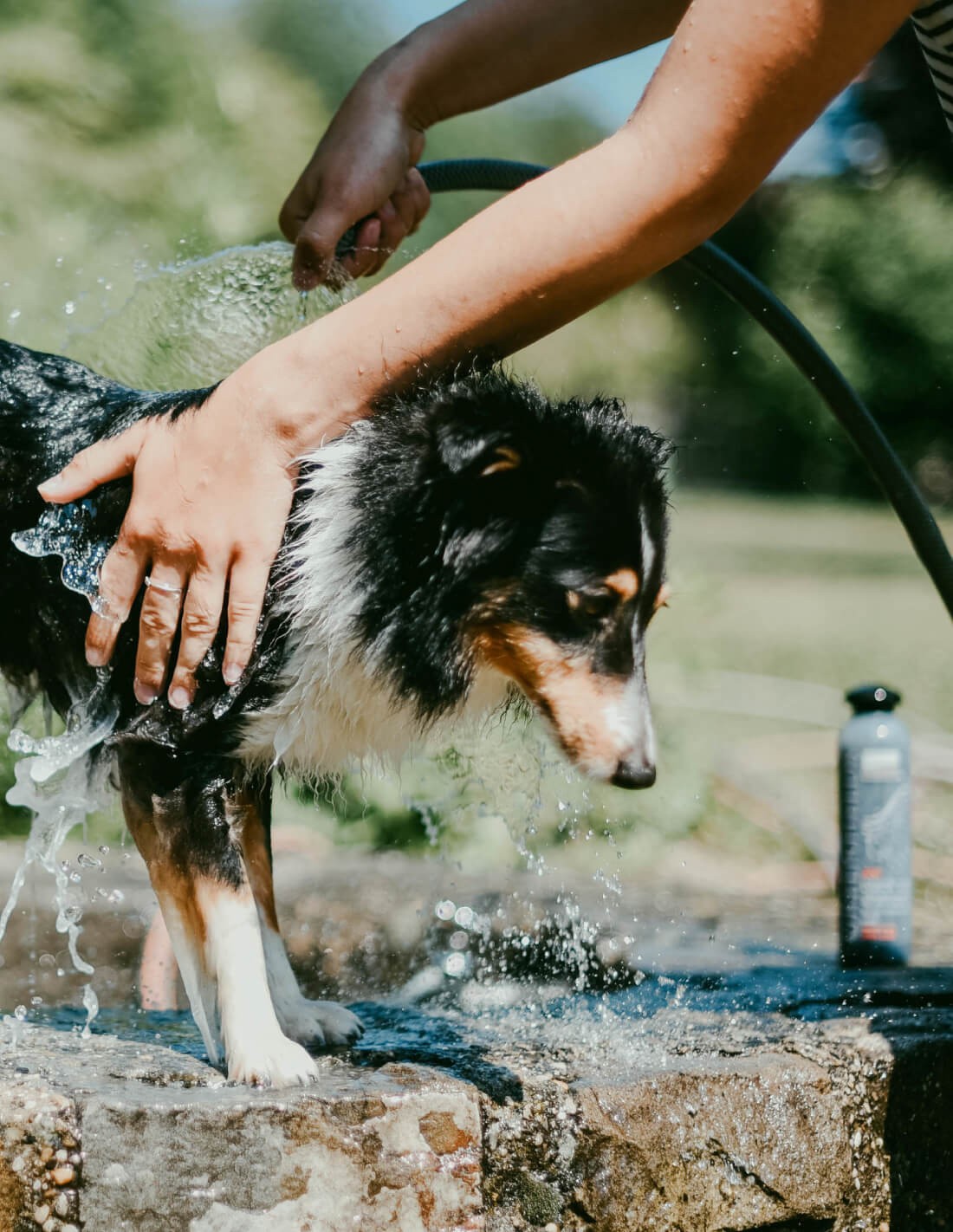 - Aplicar el champú sobre el pelaje con las manos y masajear generosamente al peludo hasta que se empiece a formar buena espuma.