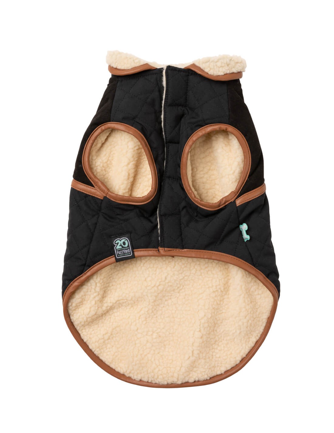 La chaqueta Ivanhoe presenta dos telas de tacto contrastante: un efecto ante y un efecto acolchado con un forro interior de estilo borrego, perfecto para mantener a tu perro cómodo y cálido al completo.