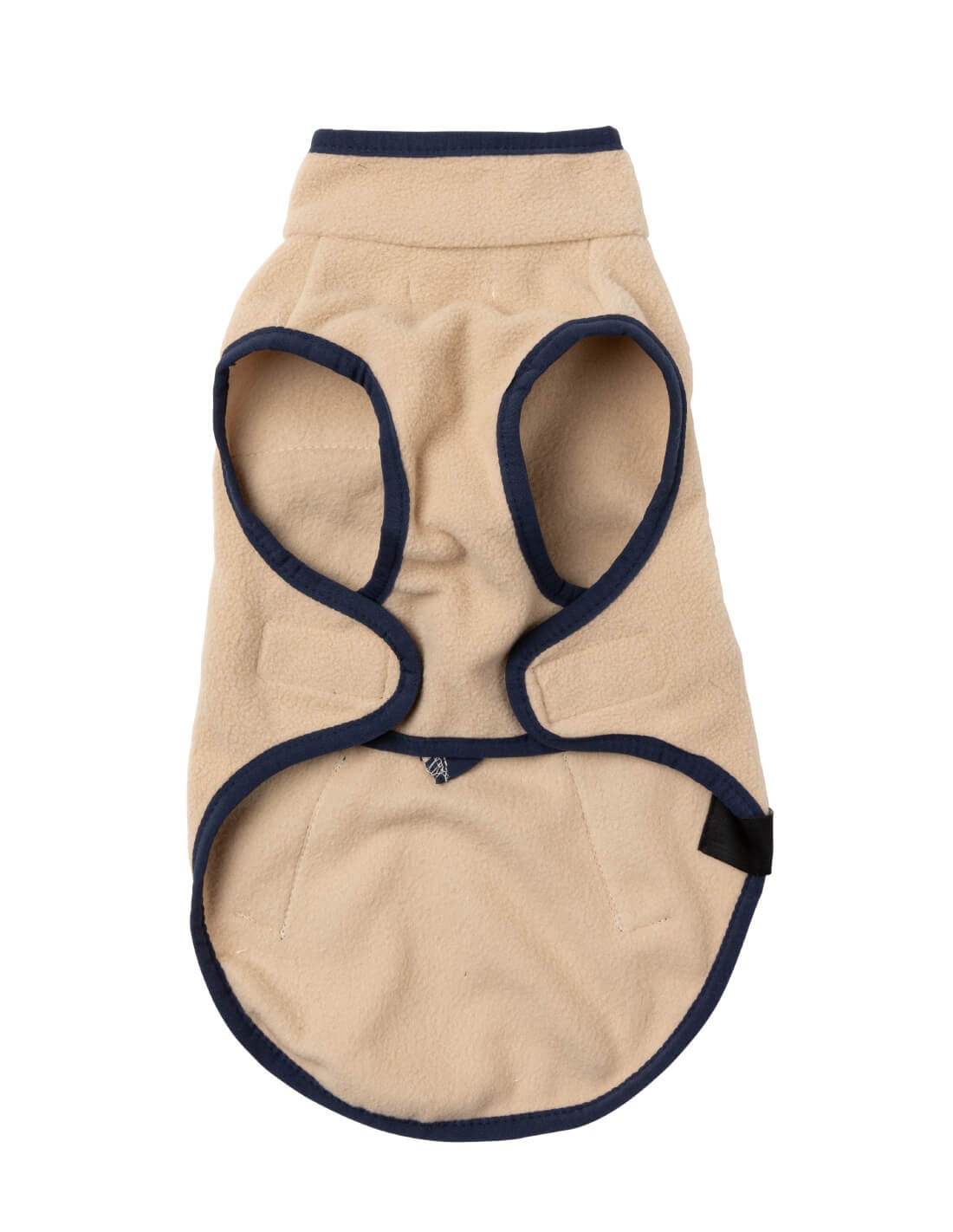 2.Para poner el chaleco, pasa la cabeza de tu perro por el orificio del cuello y conecta ambos parches de velcro en la parte inferior.