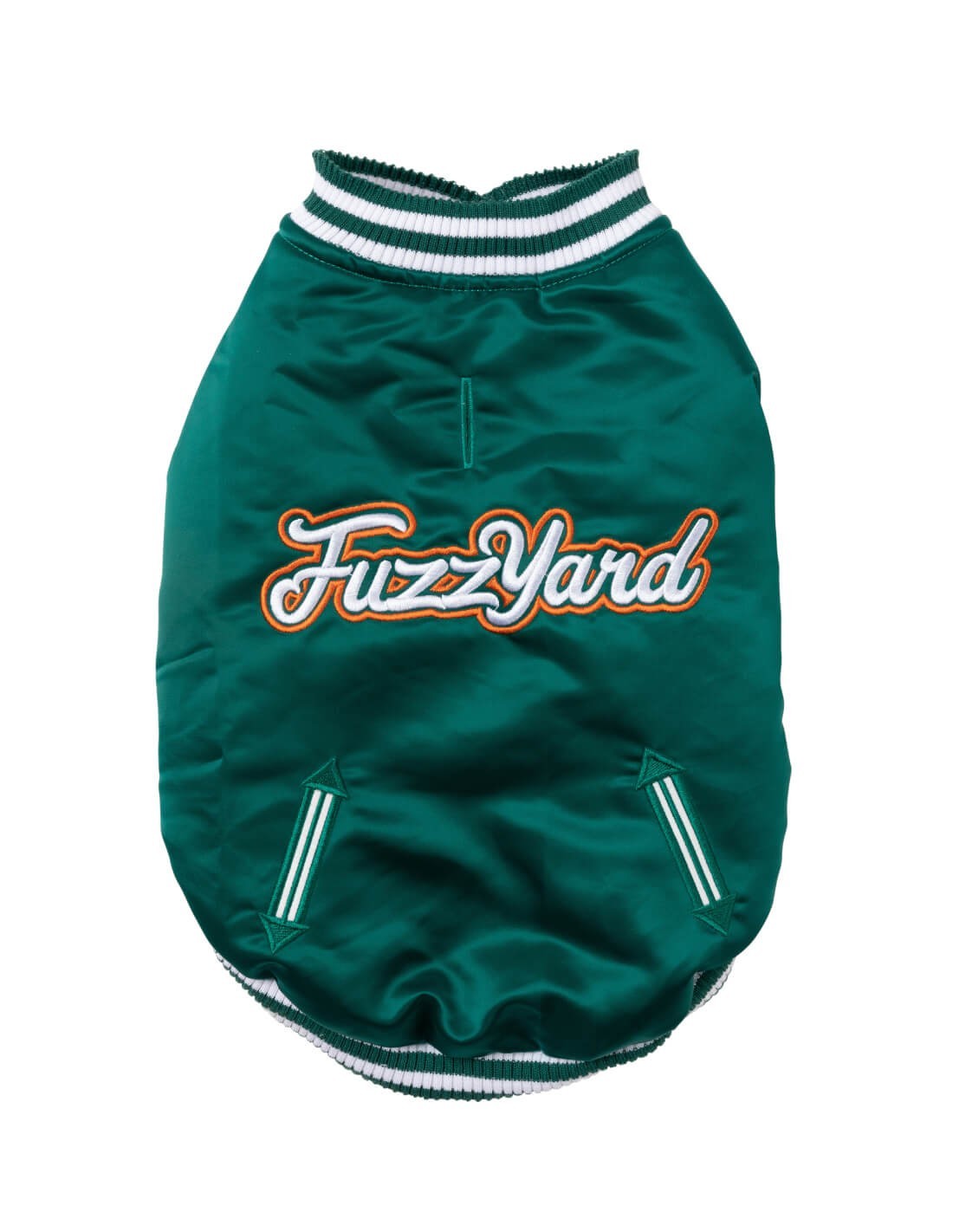 La chaqueta Fastball de estilo retro ha sido confeccionada con un material satinado brillante y tiene botones a presión en el pecho. Con ella, tu peludo se convertirá en un/a auténtico/a jugador/a de béisbol como lxs de antes.