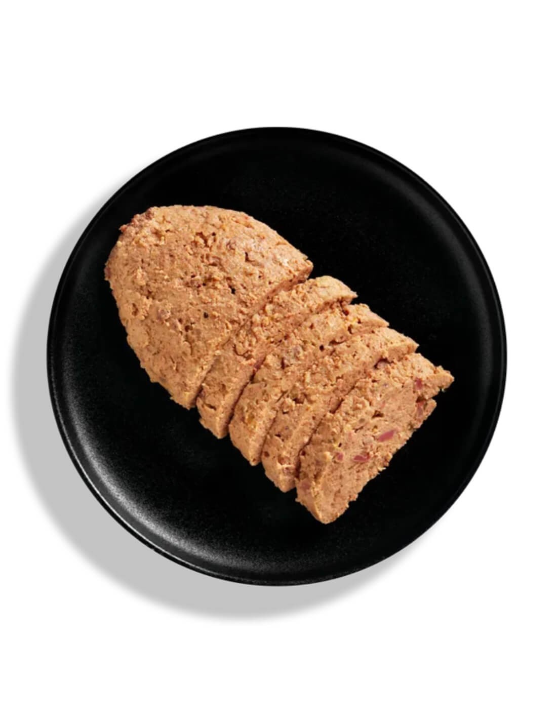 Carne de ternera, hígado, corazón, pulmón, riñón (60%); Caldo de ternera (30,8%); Calabaza (6,5%); Inulina de achicoria (1%); Aceite de salmón (0,5%); Cáscaras de huevo*¹ (0,5%); Minerales (0,5%); Levadura de cerveza, inactivada*¹ (0,2%) *¹deshidratada.