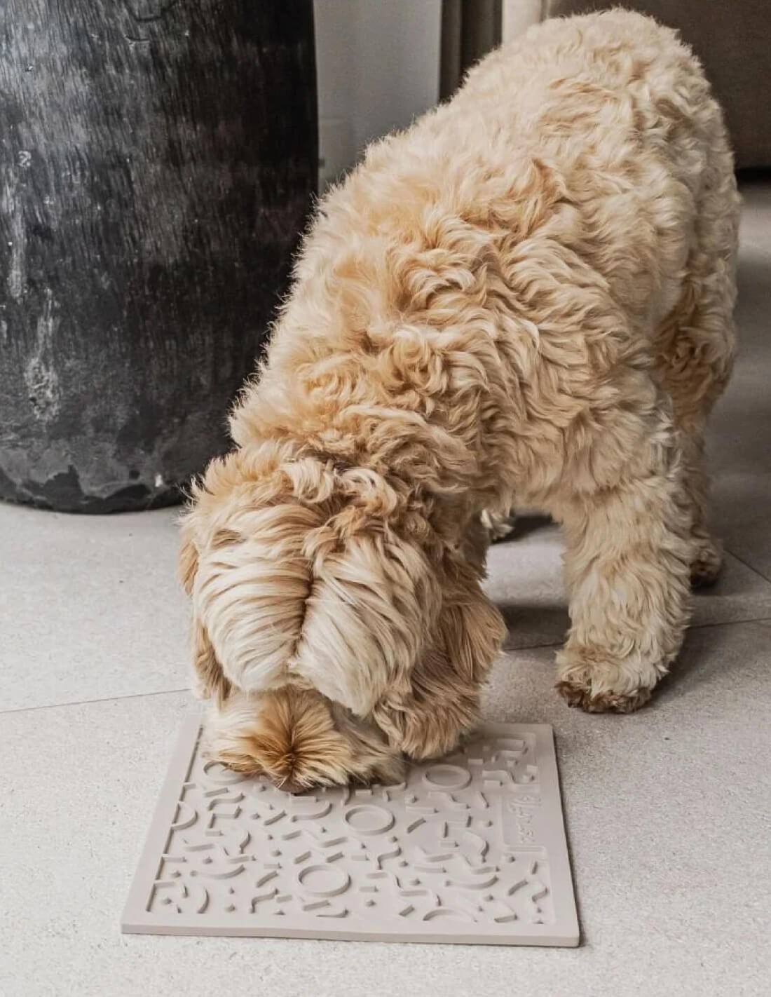 1. Esparcir comida húmeda, yogur, o cualquier snack líquido sobre los diferentes dibujos de la alfombrilla para crear una deliciosa experiencia para tu peludo.