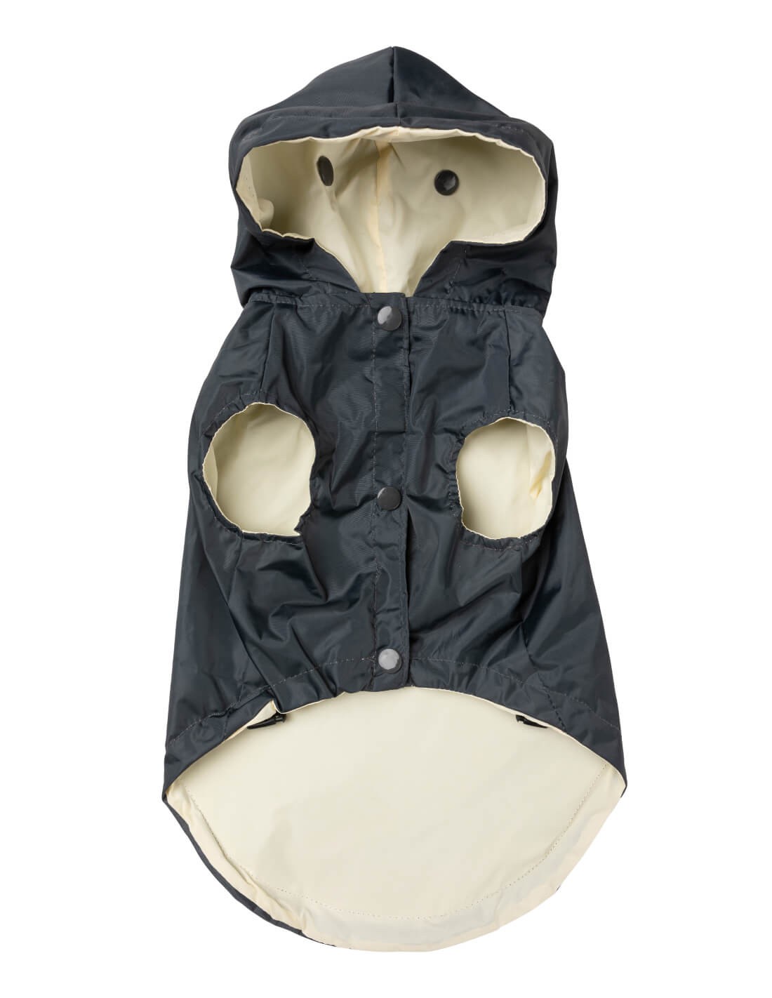Ha sido fabricado con materiales resistentes al agua de alta calidad, botones a presión en la parte delantera del pecho para facilitar el cierre y el uso, mientras que el orificio para el arnés asegura que tu perro esté siempre listo para salir, sin importar el clima.
