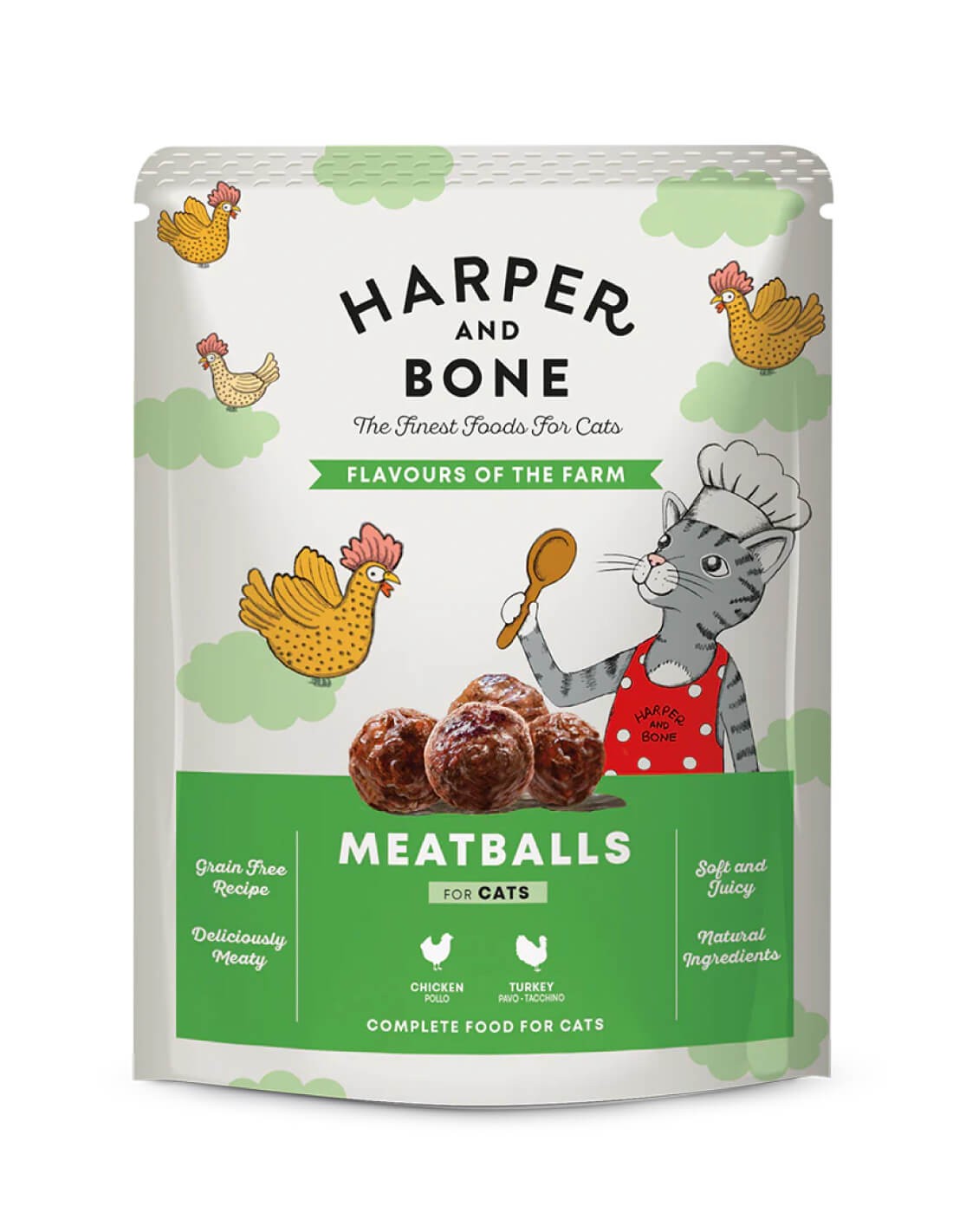 ¿Tu michi se ha cansado de sus Recetas habituales? ¡Descubre las albóndigas Flavours Farm de Harper & Bone, la Receta gourmet ideal gatos de todas las edades, razas y tamaños! Son la solución que has estado buscando y tu gato soñando.