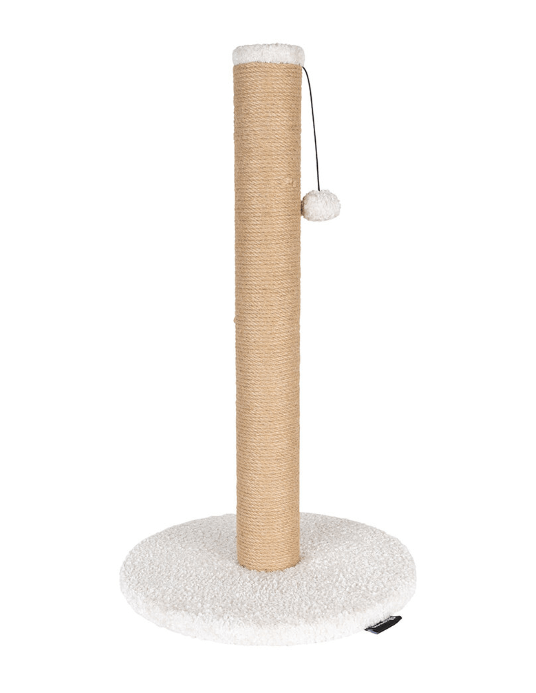 El Poste - Rascador DONNA es la combinación perfecta entre diseño moderno y funcionalidad. Confeccionado con una estructura resistente de yute natural y un suave tapizado de tela de osito de peluche, este maravilloso y divertido rascador ofrecerá a tu gato una superficie ideal para afilar sus uñas, jugar y descansar con total comodidad.