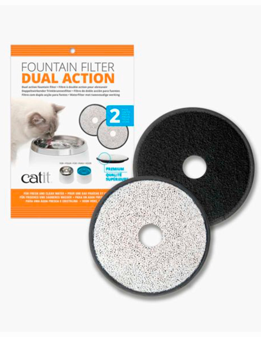 Filtros para la fuente de acero inoxidable de Catit. El carbón activo ayuda a reducir los olores y absorbe las impurezas. La malla recoge las partículas y los residuos grandes. Pack de 2 unidades.